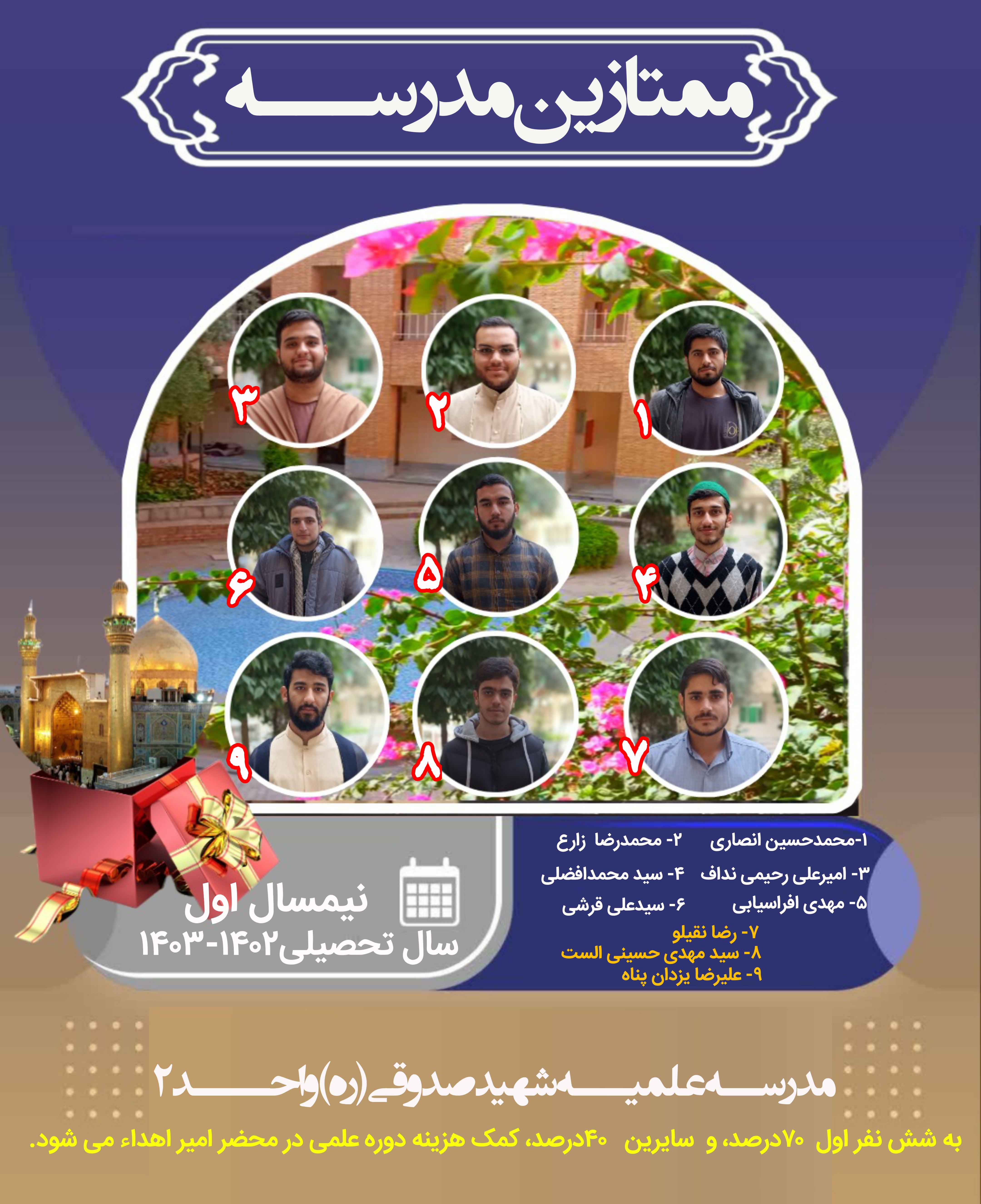 ممتازین مدرسه/آموزش/پژوهش/تهذیب (نیم سال اول 1402-1403)