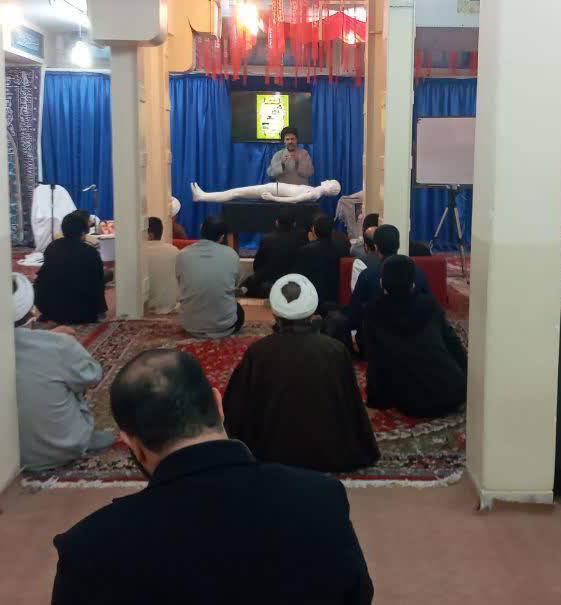 یکی از امور که طلاب نباید از آن غافل باشند و از الزامات طلبگی است، تبلیغ است. برای اعزام های تبیلغی نیاز به اولیاتی هست که طلبه باید نسبت به آن آگاهی های لازم را داشته باشد. یکی از اولیات، آگاهی داشتن از روش های غسل و کفن و نماز میت است. از این رو برای آموزش این مهارت ها، معاونت پژوهش مدرسه در روز سه شنبه مورخ 12 اسفند 99 اقدام به برگزاری کارگاه آموزشی غسل، کفن و نماز میت کرد.