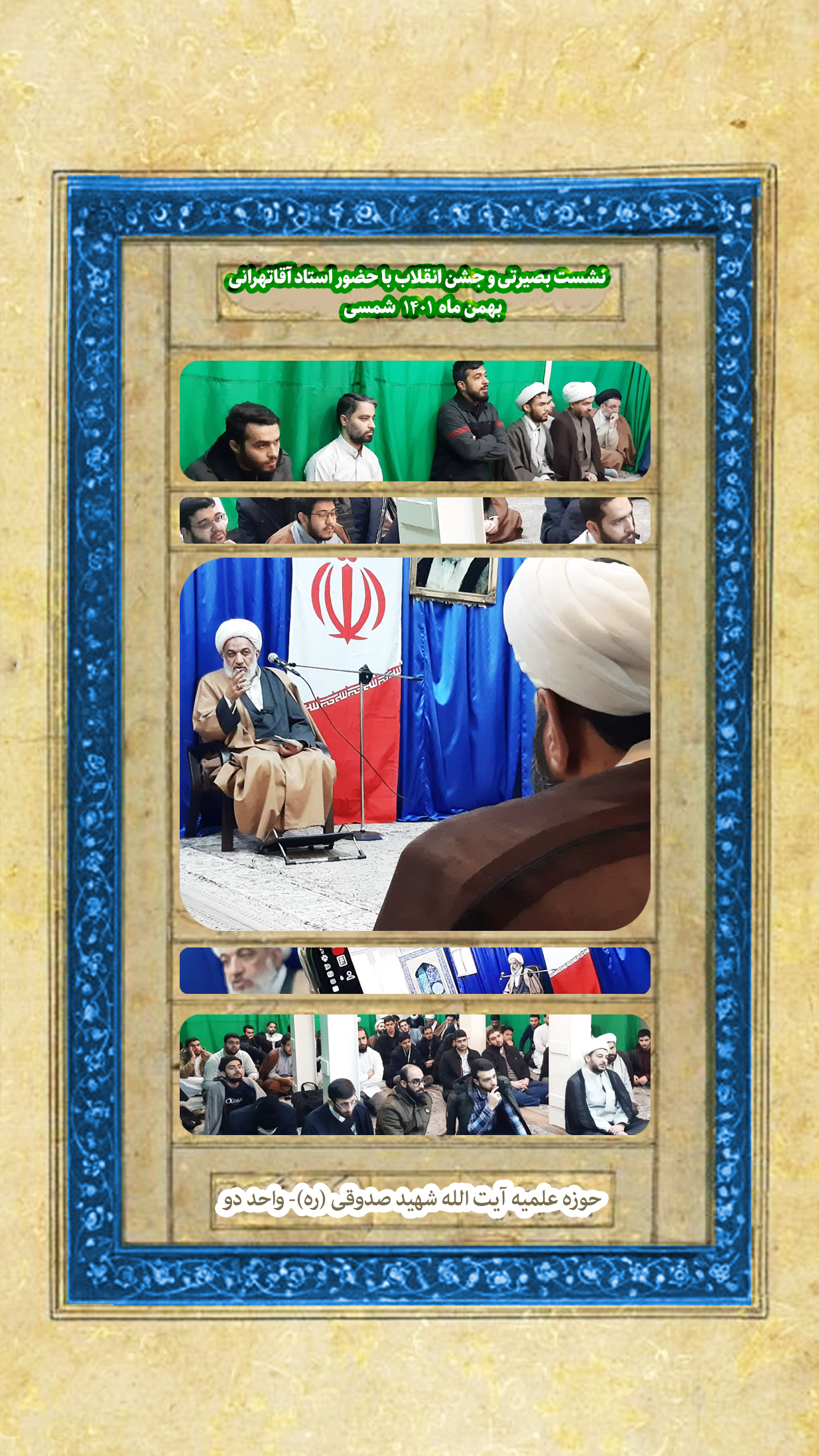 مناسبت دهه فجر انقلاب اسلامی ،جلسه بصیرتی ونشست صمیمی حجتالاسلام والمسلمین دکتر آقا تهرانی نماینده تهران و ریاست محترم کمیسیون فرهنگی مجلس شورای اسلامی با طلاب مدرسه شهید صدوقی ۲ بهمن ۱۴۰۱